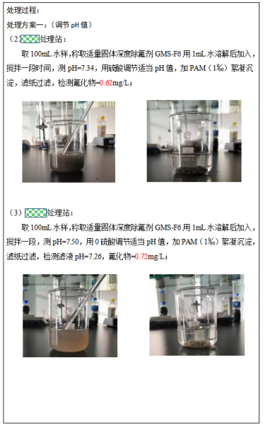 根據(jù)礦井水的含氟特點(diǎn)以及負(fù)離子的理化特性,山東環(huán)瑞生態(tài)研發(fā)了系列高性能的深度除氟劑(如圖1所示),除了可用于礦井含氟廢水的達(dá)標(biāo)處理,也可用于常規(guī)的含氟廢水處理。