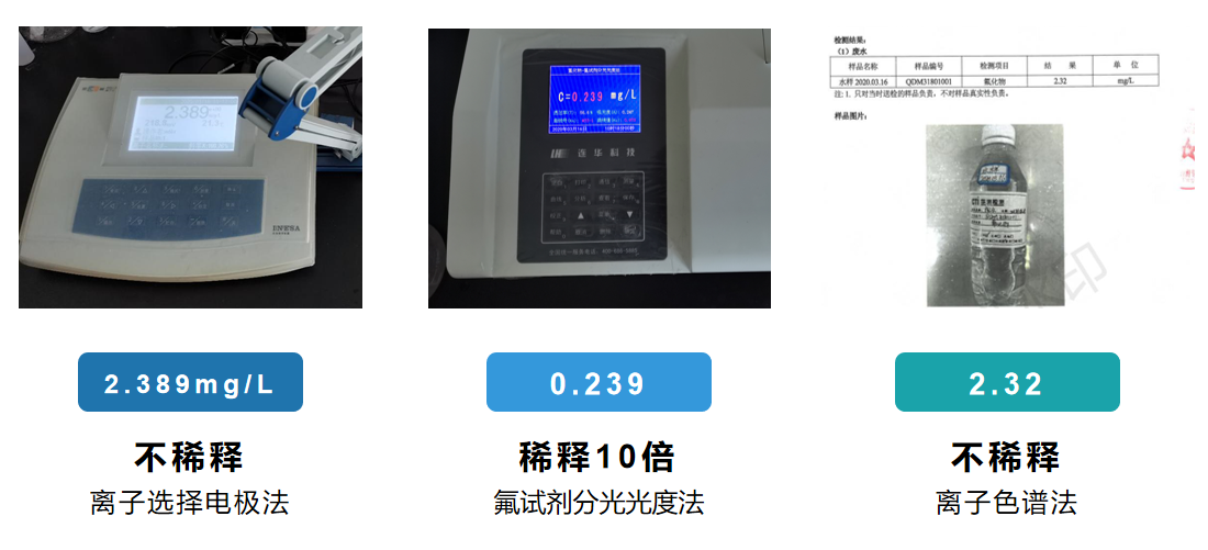 驗證不同檢測方法檢測“廢水處理后清夜”中氟化物的結果,并得出結論。