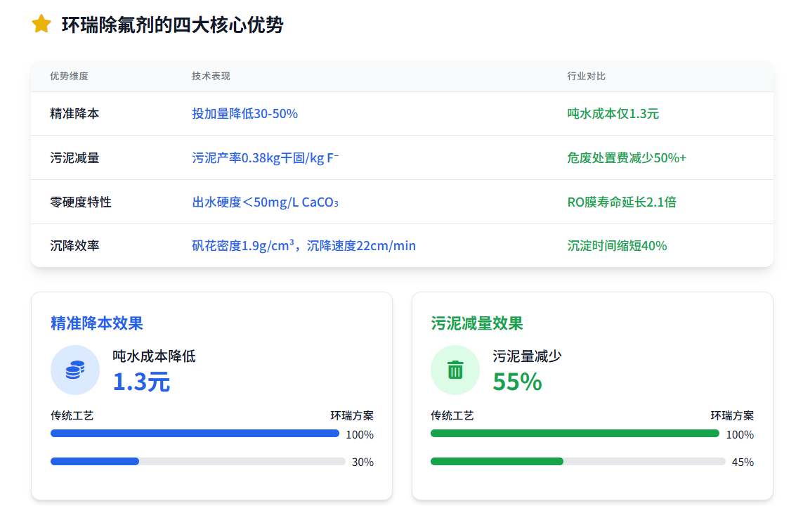 | 精準降本 | 投加量降低30-50% | 噸水成本僅1.3元 |