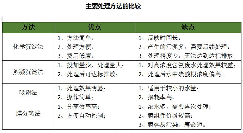 而目前,相應的市場領域中廣泛應用的除氟技術有以下幾個: