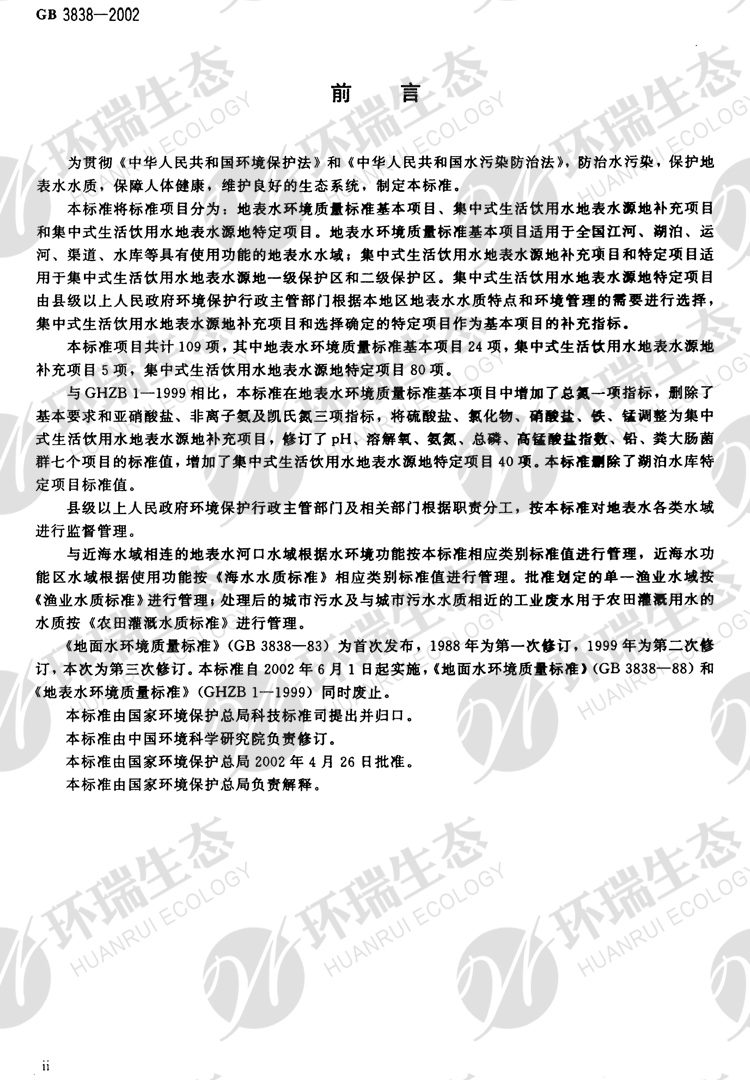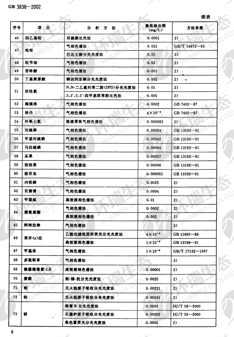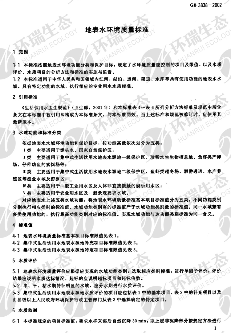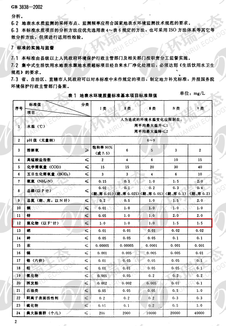 氟化物之《地表水環境質量標準》GB3838-2002